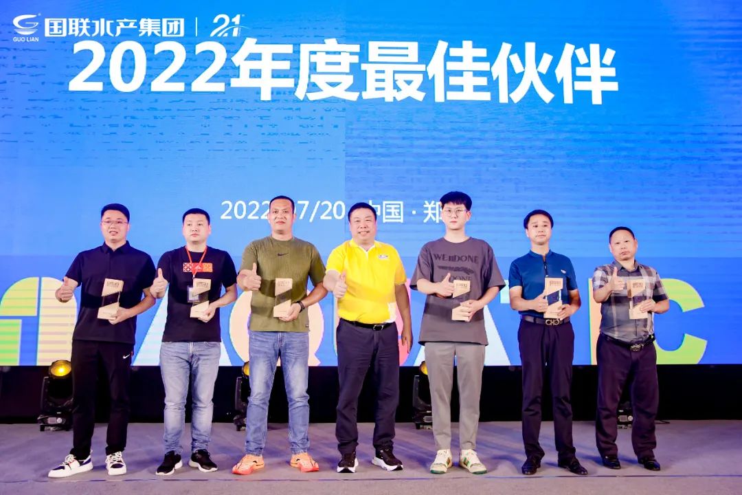 2022年是國(guó)聯(lián)水產(chǎn)集團(tuán)成立21周年,21年風(fēng)雨歷程,21年崢嶸歲月,從南海之濱到享譽(yù)全球,集團(tuán)今日的輝煌離不開每一位客戶伙伴們的信任與支持!集團(tuán)特此授予優(yōu)秀合作商榮譽(yù)獎(jiǎng)杯,希望未來(lái)雙方強(qiáng)強(qiáng)聯(lián)手,再創(chuàng)銷售佳績(jī)。優(yōu)秀品牌服務(wù)商代表百珍匯社團(tuán)總經(jīng)理蔡明威分享了經(jīng)營(yíng)心得。其表示,小霸龍海鮮預(yù)制菜美味便捷,完美解決年輕一代的做飯難題,深受C端消費(fèi)者喜愛,我們抓住風(fēng)口,乘勢(shì)出擊,相信未來(lái)銷量將持續(xù)增長(zhǎng)。