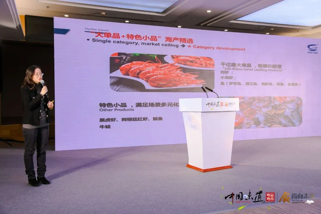 國聯(lián)水產(chǎn)集團副總裁趙紅梅向現(xiàn)場與會人員詳細介紹了風(fēng)味烤魚、塔可餅、小龍蝦意面等國聯(lián)水產(chǎn)特色預(yù)制菜品,分享了國聯(lián)水產(chǎn)在預(yù)制菜標(biāo)準制定、聯(lián)農(nóng)帶農(nóng)、產(chǎn)品研發(fā)、生產(chǎn)自動化、品牌推廣打造等方面的成功經(jīng)驗。并圍繞國聯(lián)央廚、國聯(lián)預(yù)制菜發(fā)展成果與規(guī)劃,闡述了預(yù)制菜如何重構(gòu)農(nóng)產(chǎn)品價值鏈新模式;公司如何以預(yù)制菜為切入口打造“鄉(xiāng)村振興,共同富?!钡臉影?,引領(lǐng)預(yù)制菜產(chǎn)業(yè)發(fā)展新模式。